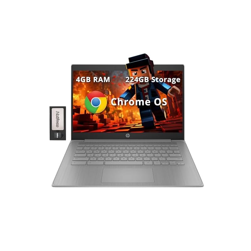 HP Laptop Chromebook HD de 14 pulgadas para negocios y estudiantes, Intel Celeron N4120, 4 GB LPDDR4, 224 GB de almacenamiento (64 GB eMMC + estación de acoplamiento de 160 GB), gráficos UHD, cámara
