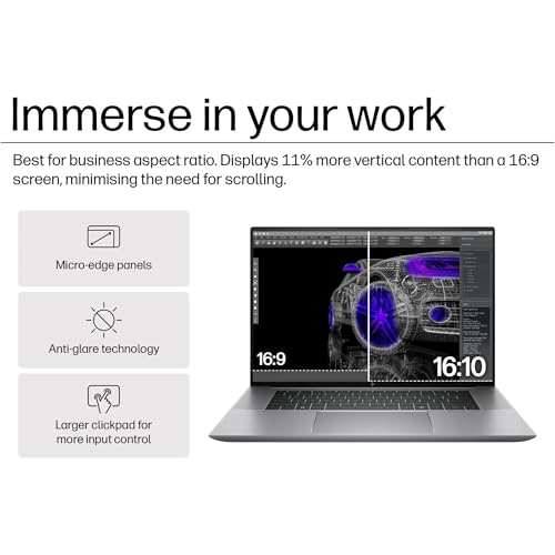 Impresionante pantalla FHD+ de 16″ para productividad: gran pantalla de 16 pulgadas 1920 × 1200 con relación de aspecto 16:10 y acabado antirreflejos que proporciona espacio de trabajo adicional, perfecto para dibujos CAD, modelado 3D, hojas de cálculo y multitarea.