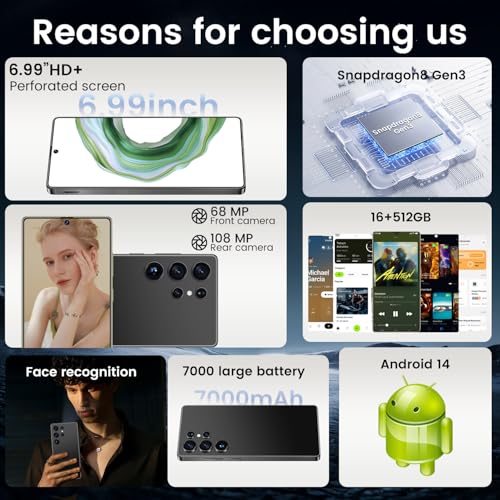 I25 Ultra Smartphone 16+512GB | Android 14 | Snapdragon 8 Gen 3 | Cámara dual de 68MP+108MP | Batería de 7000mAh | Pantalla FHD+ de 6.99 pulgadas | Supera a los competidores en velocidad y
