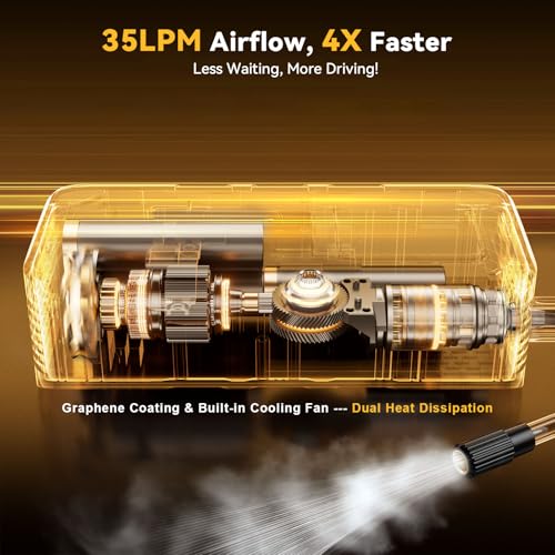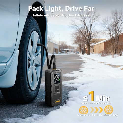 Potente rendimiento: el compresor de aire portátil modari para inflador de neumáticos es capaz de ofrecer hasta 160 PSI de presión. Este inflador de neumáticos portátil puede ofrecer un flujo de aire de 35 LPM, tardando unos 5 minutos en ventilar un neumático plano 195/65R15 a 36 Psi. (Nota: el tiempo real necesario depende del tamaño y el estado de tu neumático) Con este inflador de neumáticos de automóvil, no necesitas conducir a una estación de servicio para mantener tu automóvil, ahorrando la molestia y el tiempo de conducir