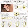 Jstyle Aretes de acero quirúrgico hipoalergénico para orejas sensibles, aretes de oro de 14 quilates con parte trasera plana para mujeres y hombres, pequeños aretes de acero inoxidable con parte