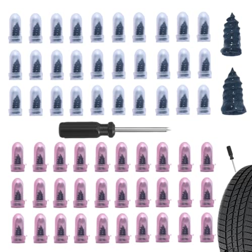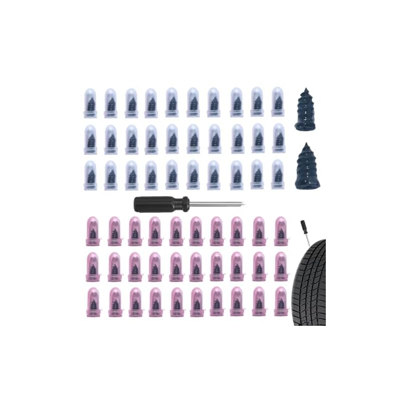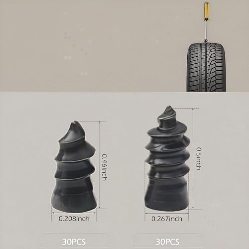 Dos tamaños para mayor versatilidad: incluye 30 clavos pequeños (0.21 x 0.47 pulgadas) y 30 grandes (0.26 x 0.59 pulgadas) clavos y 1 destornillador. Los tamaños pequeños funcionan para pinchazos menores de uñas delgadas; los tamaños grandes manejan agujeros más grandes, cubriendo diversas necesidades de reparación para diferentes tipos de neumáticos.