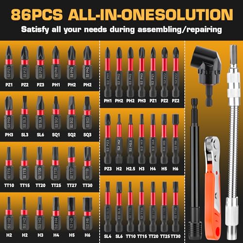 Juego de 86 destornilladores de tuercas de impacto magnéticos, juego de brocas métricas y SAE con adaptadores de enchufe, soporte para brocas, destornillador de tuerca de ala, enchufes universales