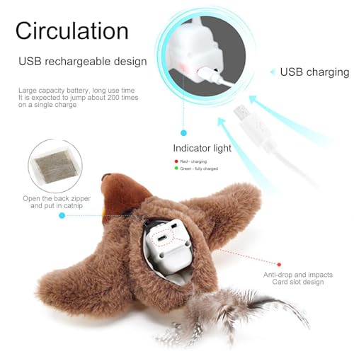 Diseño multimodo: mejora el tiempo de juego de tu gato con nuestro juguete para pájaros para gatos. Proporciona una experiencia de juego variada con tress modos diferentes de aleteo que mantendrán a tu amigo peludo entretenido e interesado. Además, puedes cargarlo fácilmente mediante USB, por lo que no necesitas pilas.