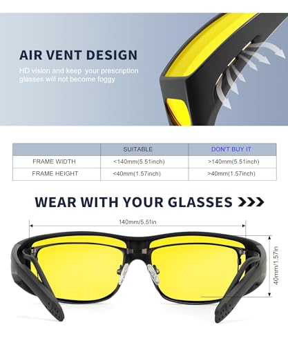 KALIYADI Gafas de visión nocturna que se ajustan sobre las gafas envolventes: gafas de conducción nocturna antirreflejos para hombres y mujeres, lentes HD