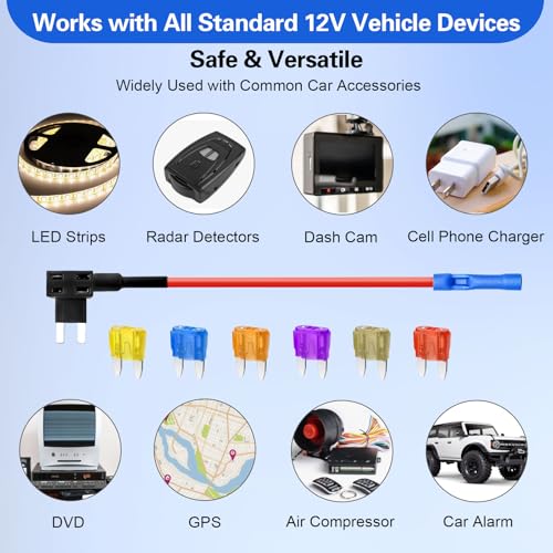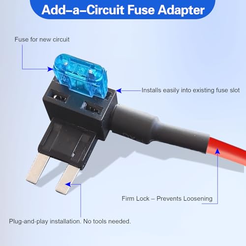 Plug & Tap: Diseñado para enchufar directamente a su caja de fusibles para agregar nuevos circuitos de forma segura. Ideal para instalar cámaras de salpicadero, unidades GPS, kits de cableado duro y otros accesorios de 12V/24V.