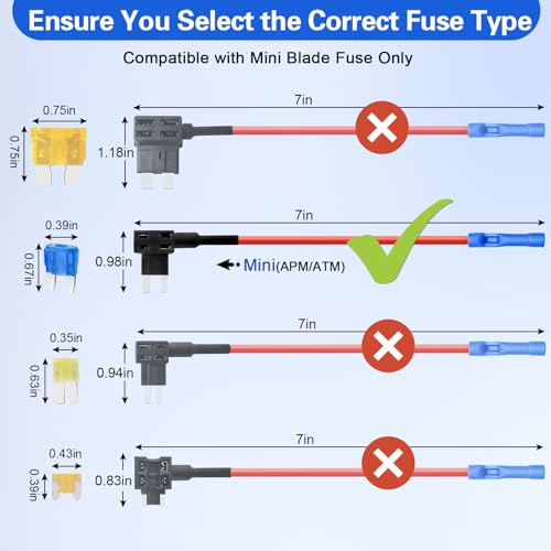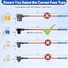 Conexión inconcreto: compatible con la mayoría de automóviles, camiones, SUV, furgonetas y vehículos recreativos que utilizan mini fusibles de arma blanca de perfil regordete. Imprescindible para electricistas, modders de automóviles y conductores diarios.