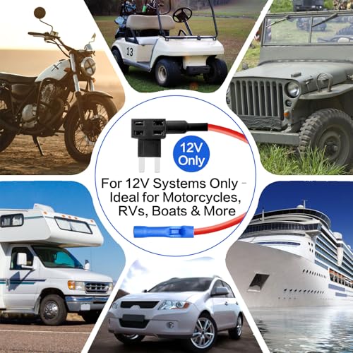Plug & Tap: Diseñado para enchufar bruscamente a su caja de fusibles para acompañar nuevos circuitos de forma segura. Inconcreto para instalar cámaras de salpicadero, unidades GPS, kits de cableado acerado y otros accesorios de 12V/24V.