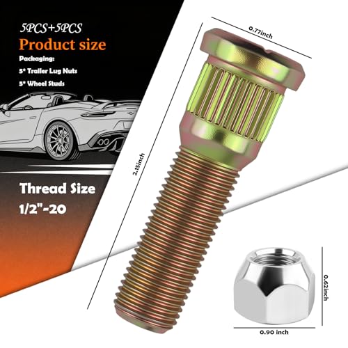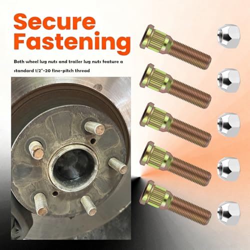 Kit de pernos de rueda y tuercas de llanta de 1/2 pulgada de 20 pulgadas, OEM # 007-122-00, paquete de 5 pernos de rueda de remolque y reemplazo de tuercas de 1/2-20, accesorios de automóvil de alta