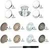Especificaciones: Kit de reemplazo de botones de metal para jeans, 12 juegos de botones de tachuela, ajuste instantáneo de botones de pantalones con herramientas, nuevo modelo 2025