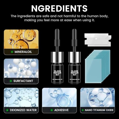 Gran servicio: nuestro kit de reparación de parabrisas agrietado contiene 2 fluidos de reparación; 2 maquinillas de afeitar; 10 películas de curado; 1 manual de instrucciones; ten la seguridad de que tu vidrio será reparado de manera eficiente y duradera, líquido de reparación de nanocristales, proporcionando una mejor protección durante años. Si el kit de reparación de vidrio tiene algún problema relacionado con la calidad con el artículo, no dudes en ponerte en contacto con nosotros, podemos proporcionar la consulta. y soporte técnico para ti.
