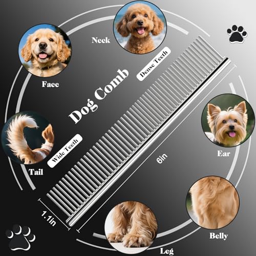 Respetuoso con la piel: el peine para perros de acero inoxidable 100% de alta calidad cuenta con pines redondeados que masajean suavemente la piel, estimulan la circulación y garantizan una durabilidad duradera
