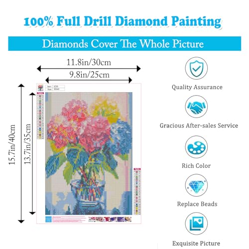 Especificaciones: Kits de pintura de diamante de hortensias para adultos, kit de arte de diamantes para adultos, pintura de diamantes 5D, pintura de diamantes de taladro completo, arte y manualidades de gema de flores,