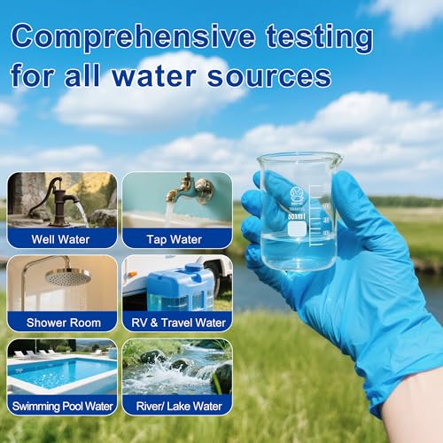 Prueba common de agua: prueba de forma segura todas las fuentes de agua, incluyendo agua del grifo, agua de pozo, agua de piscina, acuarios y mucho más. Perfecto para hogares, caravanas, viajes de campamento y uso al aire libre para garantizar que tu agua esté libre de bacterias.