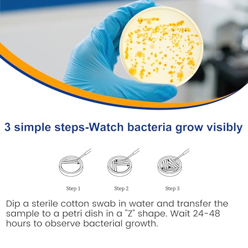 【Resultados de prueba precisos】- A diferencia de las tiras de prueba que cambian de color, nuestro kit le permite observar visualmente el crecimiento bacteriano en las placas de cultivo en un plazo de 24 a 48 horas, proporcionando resultados más confiables y verificables.