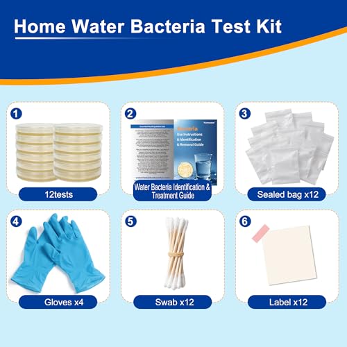 Kits de prueba de bacterias para agua potable – 12 pruebas detectan coliformes, E.coli y todas las bacterias | Kit de prueba de calidad del hogar para agua de pozo, grifo, piscina, bañera de