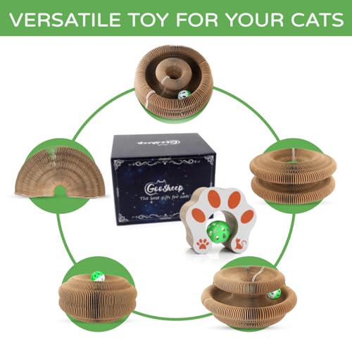 Juguete de acordeón para gatos: acordeón para gatos Goosheep hecho de papel corrugado de alta calidad, adopta un fuerte imán para la adsorción, evitando los peligros de formaldehído provocados por el pegamento a los gatos, resistente al desgaste y a los arañazos