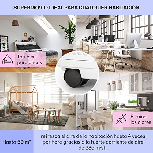 INCLUYE 5 FUNCIONES EN 1 – El aire acondicionado portátil y silencioso de Klarstein cuenta con una potencia de 12.000 BTU/3,4kW. El deshumidificador cuenta con un filtro de carbono para acabar con la humedad de las habitaciones para tener un ambiente más puro.