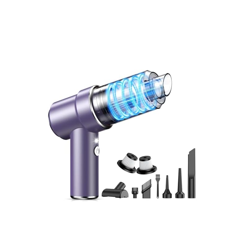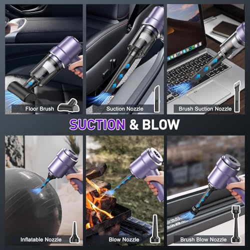 Especificaciones: KMM Aspiradora de mano para automóvil, aspiradora de 9000 PA y plumero de aire, aspiradora de alta potencia de 120 W, portátil, inalámbrico, aspiradora de mano recargable con múltiples boquillas y luz