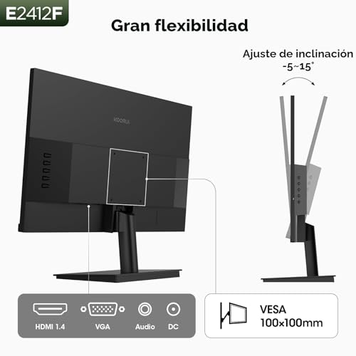 KOORUI Monitor de computadora de 24 pulgadas Full HD 1920 x 1080p 100Hz VA con relación de contraste 3000:1 con HDMI VGA, biseles delgados de tres lados, montaje VESA de 100 x 100 mm, inclinación