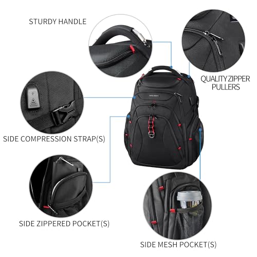 Especificaciones: KROSER Mochila de viaje para laptop de 17.3 pulgadas, XL, mochila para computadora con carcasa dura, bolsillos RFID, repelente al agua, mochila de negocios, universidad, elegante bolsa para computadora portátil para hombres y mujeres, color negro