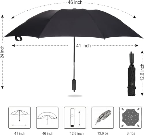 Compacto, portátil y fácil de transportar: este es un diseño mejorado del paraguas plegable inverso más largo, ligero y más fácil de llevar. Este paraguas inverso es fácil de almacenar en tu automóvil, tus maletines, mochilas, bolsas de tabel, etc. Es perfecto para viajes, negocios, camping, pesca y uso diario. Adecuado para hombres y mujeres.