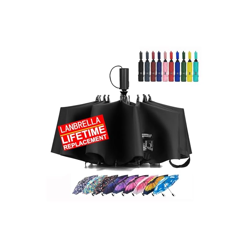 LANBRELLA Paraguas plegable inverso compacto paraguas de viaje a prueba de viento automático