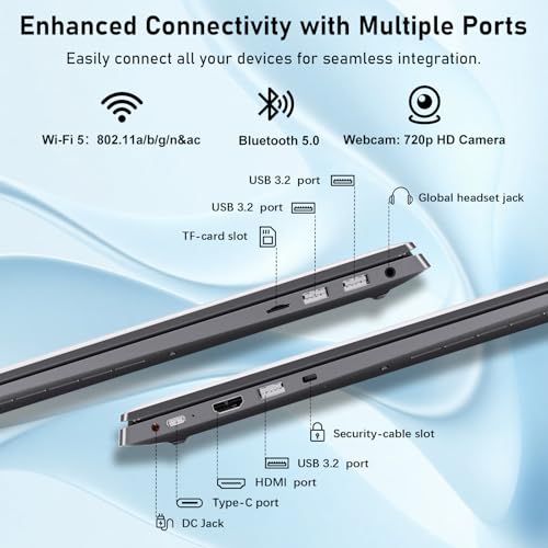 Amplia conectividad y opciones multimedia: mantente conectado con una variedad de puertos, incluyendo 3 puertos USB 3.2, 1 puerto HDMI, 1 USB tipo C, una ranura para tarjeta TF y un conector para auriculares/micrófono. Disfruta de una conectividad inalámbrica estable con Wi-Fi 5 y Bluetooth 5.0, mientras que la cámara web integrada de 720p garantiza videollamadas nítidas para el trabajo o el aprendizaje remoto.
