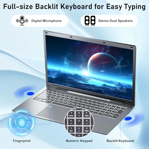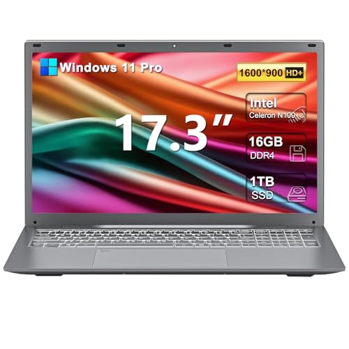 Laptop 2025 17 17.3 pulgadas HD+ Windows 11 Pro para estudiantes y negocios, 16 GB DDR5 RAM, 1 TB SSD, Intel 4-Core N100 (hasta 3.4 GHz), teclado retroiluminado, huella digital, tipo C, con licencia
