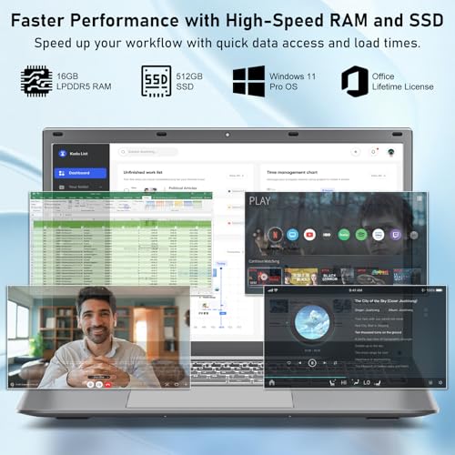 Windows 11 Pro y MS Office: listo para la productividad: esta computadora portátil viene preinstalada con Windows 11 Pro y MS Office, por lo que está lista para usar directamente de la caja. Benefíciese de funciones de seguridad avanzadas y herramientas profesionales sin la necesidad de compras adicionales o configuración complicada.