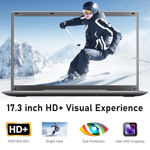 Pantalla HD de 17.3 pulgadas: aumenta tu productividad: esta laptop de 17.3 pulgadas cuenta con una pantalla HD vívida (1600 x 900), que ofrece colores vibrantes y detalles nítidos. Ya sea que estés abordando tareas laborales, estudiando o disfrutando de contenido en streaming, la amplia pantalla ofrece una experiencia de visualización inmersiva adaptada tanto para estudiantes como para profesionales.