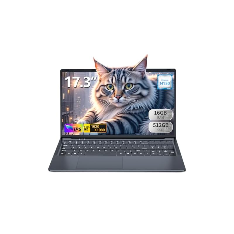 Laptop 2025 de 17.3 pulgadas, 16 GB DDR4 512 GB SSD para juegos, Celeron N150 (4C/4T, hasta 3.6 GHz), WiFi 5 BT 4.2, teclado retroiluminado, batería de 6 horas, USB 3.0, HDMI, Win 11 Pro Business