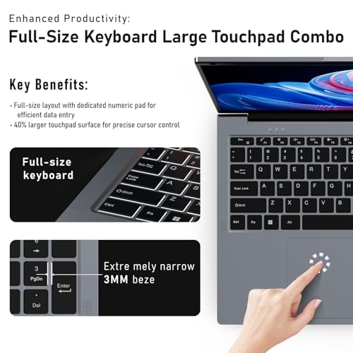 Especificaciones: Laptop para juegos 2025, computadora portátil de 17.3 pulgadas, 16 GB de RAM 1 TB SSD, procesador N150 (4C/4T, hasta 3.6 GHz), pantalla FHD 17.3 pulgadas 1920 x 1080, WiFi 5, BT4.2, teclado