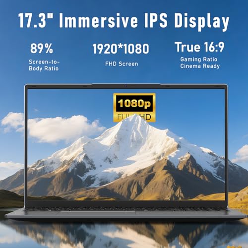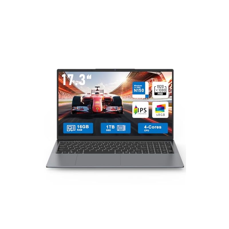 Laptop para juegos 2025, computadora portátil de 17.3 pulgadas, 16 GB de RAM 1 TB SSD, procesador N150 (4C/4T, hasta 3.6 GHz), pantalla FHD 17.3 pulgadas 1920 x 1080, WiFi 5, BT4.2, teclado