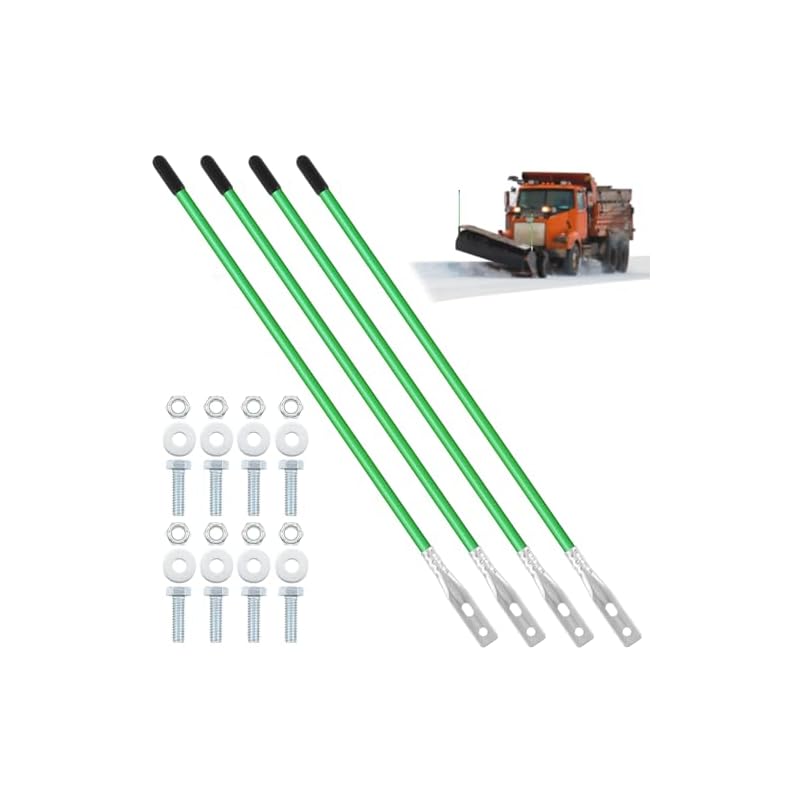 Especificaciones: Lasnten Juego de 4 marcadores de hoja de quitanieves de 27 pulgadas, alambre de acero, perno interior, guías de parachoques de alta visibilidad, fácil instalación para quitanieves ATV (verde)