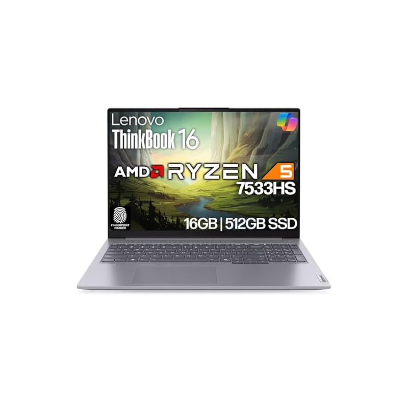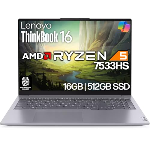 Lenovo ThinkBook 16 G7 – Laptop empresarial de 16 pulgadas, FHD+, AMD Ryzen 5 7533HS, 16 GB DDR5, 512 GB NVMe, WiFi 6 + BT, RJ-45, HDMI, lector de huellas dactilares, cámara web HD, Win 11 Pro