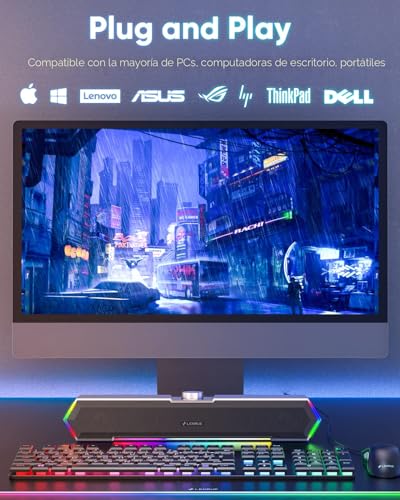 Especificaciones: LENRUE G11 – Altavoces para computadora de escritorio, luces táctiles, altavoces de PC con sonido claro de sobretensión, alimentado por USB C/USB para computadora de escritorio y monitor de