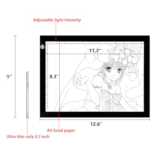 Especificaciones: LitEnergy Caja de seguimiento de luz LED A4, ultrafina y ajustable USB Power Artcraft, almohadilla de luz LED para transferencia de tatuajes, dibujo, transmisión, bocetos, animación, estarcido