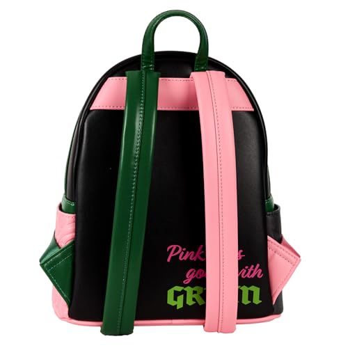 Con detalles increíbles para dar vida a Glinda y Elphaba, esta mini-mochila Loungefly está hecha de cuero vegano (poliuretano), tiene un compartimento frontal con cremallera, bolsillos laterales y correas traseras ajustables.