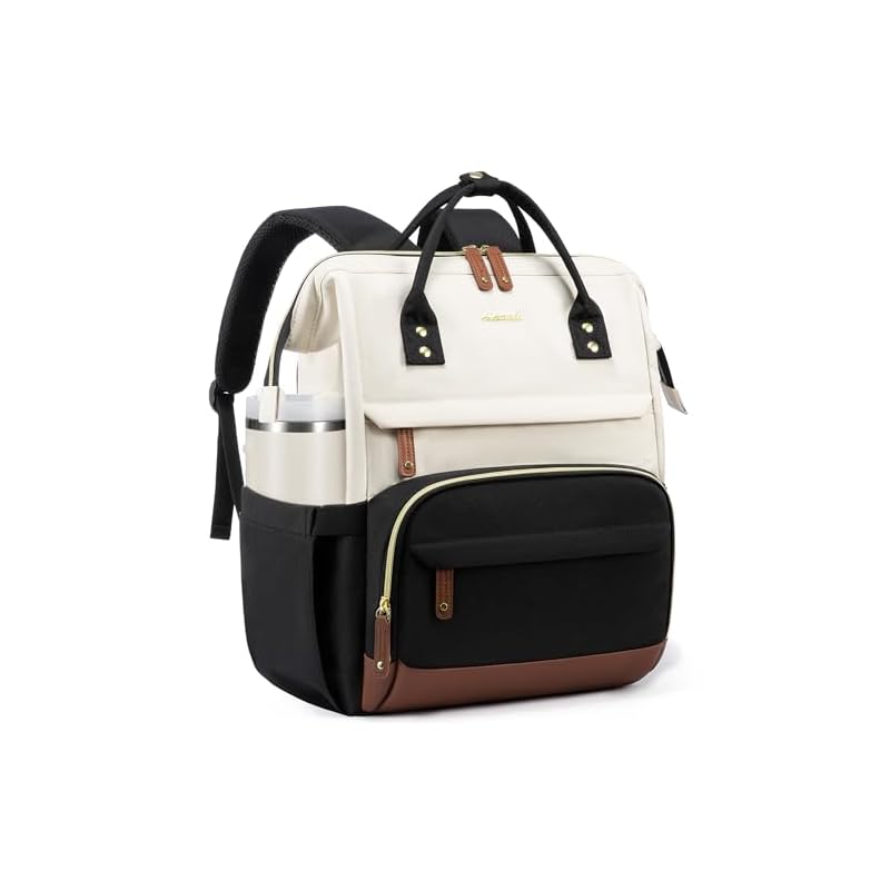 LOVEVOOK – Mochila para laptop para mujer, mochila de negocios de 15.6 pulgadas con puerto USB, de gran capacidad, para la escuela, universidad, viajes, informal, impermeable, negro, blanco, marrón