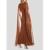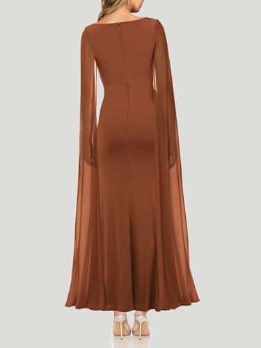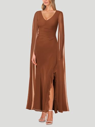 Lrady Women’s Evening Gowns V Neck High Split Wedding Guest Cocktail Formal Party Maxi Dresses with Cape Sleeve