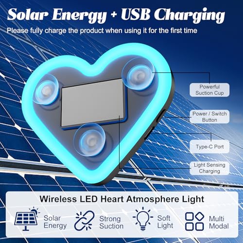 【Fácil instalación】Nuestra luz ambiental para automóvil en forma de corazón cuenta con un diseño de ventosa fuerte desmontable, lo que permite una instalación inalámbrica en cualquier momento y en cualquier lugar. Simplemente retira la película protectora del panel solar, presiona las tres ventosas en secuencia y empuja hacia arriba para bloquearlas en su lugar para un ajuste perfecto. Se adhiere fácilmente a las ventanas del automóvil, paredes lisas y otras superficies, ahorrando tiempo y esfuerzo