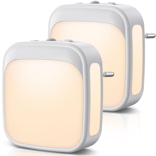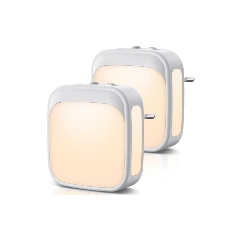 Especificaciones: Luz Nocturna con Sensor Crepuscular, 2 Piezas Luz Nocturna Infantil Enchufe Regulable con 3 Modos, Luz de Noche Plug in, Luz Quitamiedos Infantil para Armario, Escalera, Pasillo, Habitación, Sala