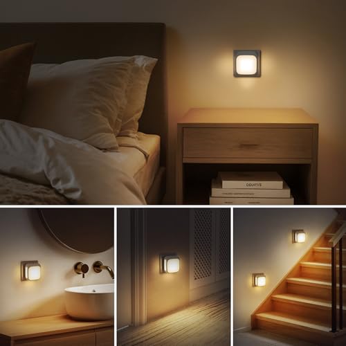 Esta luz nocturna se puede utilizar en dormitorios, pasillos, baños, pasillos, habitaciones de niños, habitaciones de bebés, cocinas, salas de estar, garajes, cuartos de lavado, guarderías, sótanos, pasillos y más. Para brindarte luz en la oscuridad