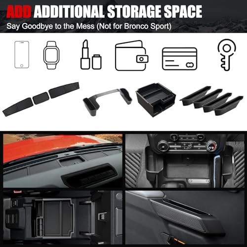 Compatible con modelos: el juego de almacenamiento de control central está diseñado exclusivamente para Ford Bronco 2025 de 4 puertas (no compatible con Ford Bronco 21-24 y no para 2 puertas y no para Bronco Sport)