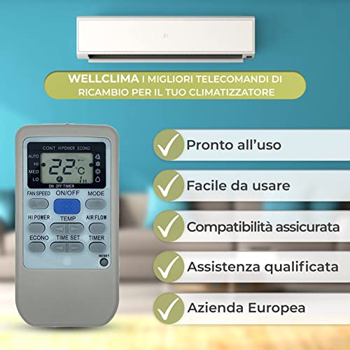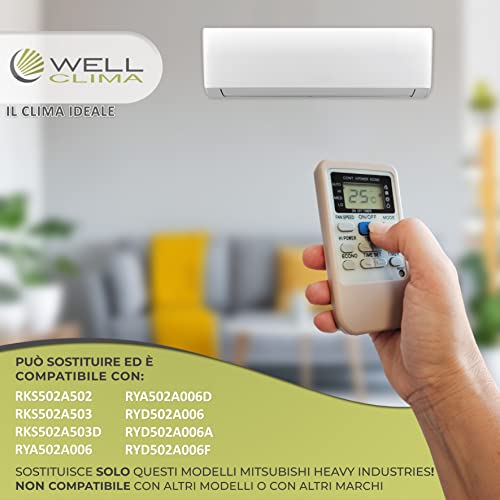 Mando a distancia para aire acondicionado Mitsubishi Heavy Industries. Puede funcionar en diversos modelos de la misma marca, no confundir con productos Mitsubishi Electric; aunque hagan referencia al mismo grupo, se trata de una línea de producto diferente y no compatible. Todas las funciones de base + Hi power, modo Econo, temporizador.