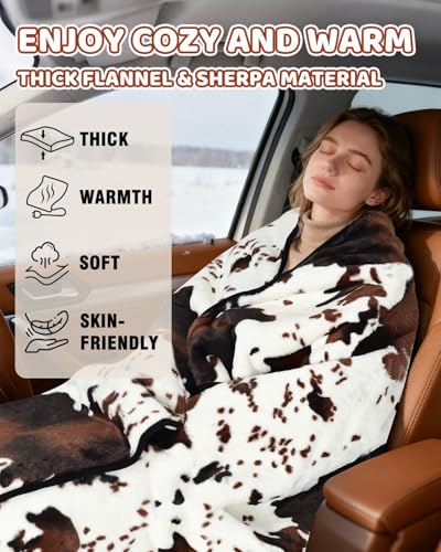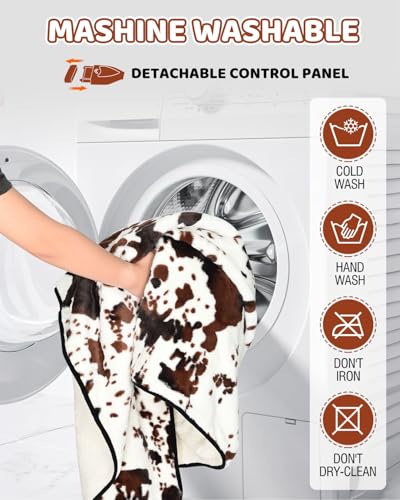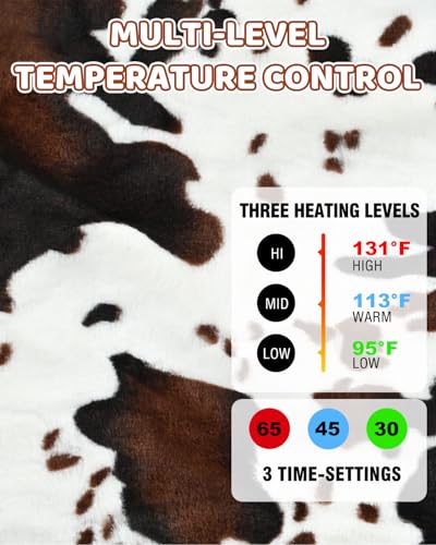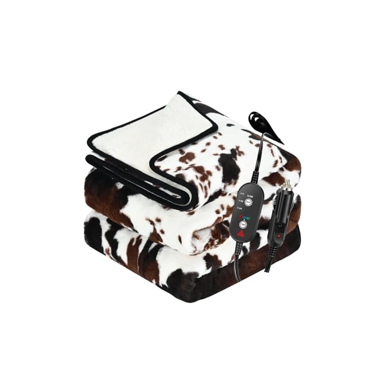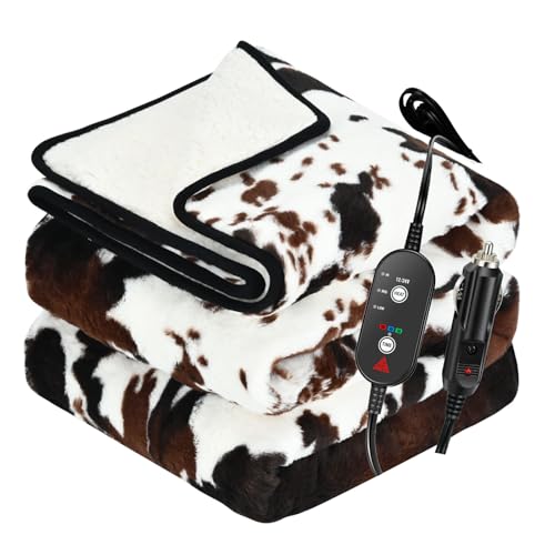 Especificaciones: Manta térmica con estampado de vaca, manta eléctrica actualizada de 12/24 voltios, 3 niveles de calefacción y apagado automático de 4 horas, manta térmica portátil para automóvil, camión