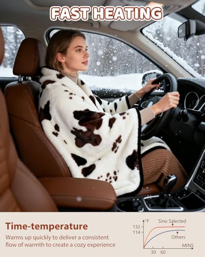 Manta térmica con estampado de vaca, manta eléctrica actualizada de 12/24 voltios, 3 niveles de calefacción y apagado automático de 4 horas, manta térmica portátil para automóvil, camión
