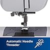 Enhebrador automático de agujas y bobina superior de caída: esta máquina de coser incluye un enhebrador automático de agujas que empuja perfectamente el hilo a través de la aguja y una cómoda bobina superior resistente a atascos