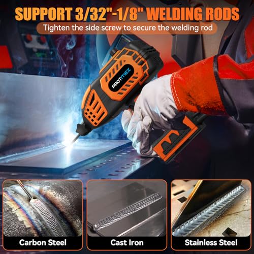 Compatible con múltiples tamaños de varilla y tipos de metal: este soldador eléctrico soporta electrodos de 3/32 a 1/8 pulgadas (2.5 a 0.126 in) e incluye 20 varillas de soldadura. Soldador láser de mano de acero inoxidable, acero al carbono, hierro y otros metales comunes con facilidad, lo que lo convierte en un buen ayudante para proyectos de automóviles, mecanizado, cercas y hardware. El arranque de arco caliente garantiza un encendido suave y soldaduras más limpias, mientras que la perilla de fácil cambio ahorra tiempo y aumenta la eficiencia